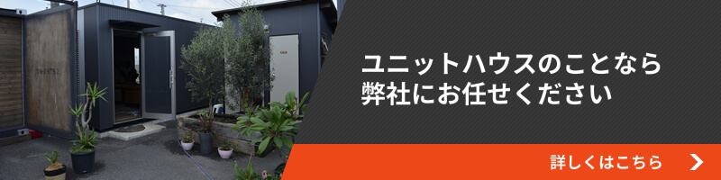 ユニットハウスは、工場で生産する工業化建築物です。工場内で約80%の工程を完了するため、ローコストで高品質、工期の早い建物を利用することが可能です。