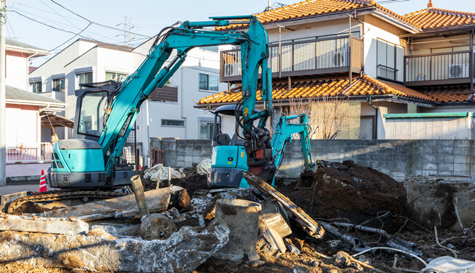 解体作業はお任せください。安全管理を徹底した作業を心がけています。環境汚染(騒音・粉塵)対策や事故、トラブルを最小限に抑えて作業いたします。